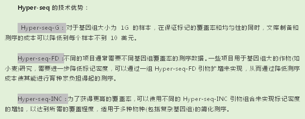 Hyper-seq技术具有广泛的适用性和可扩展性,同时具有一定的基因区域富集效应。可以根据不同的物种和项目的需求,通过使用不同的Hyper-seq引物,灵活地调节标记密度,通过特殊的PCR方式,不需要额外酶切和连接接头等,即可实现大量样品同时建库,产出海量基因型大数据,以低成本满足不同物种大规模分型测序的需求。对于1G基因组样本,Hyper-seq建库测序成本可以降低到每个样本不到10美元。