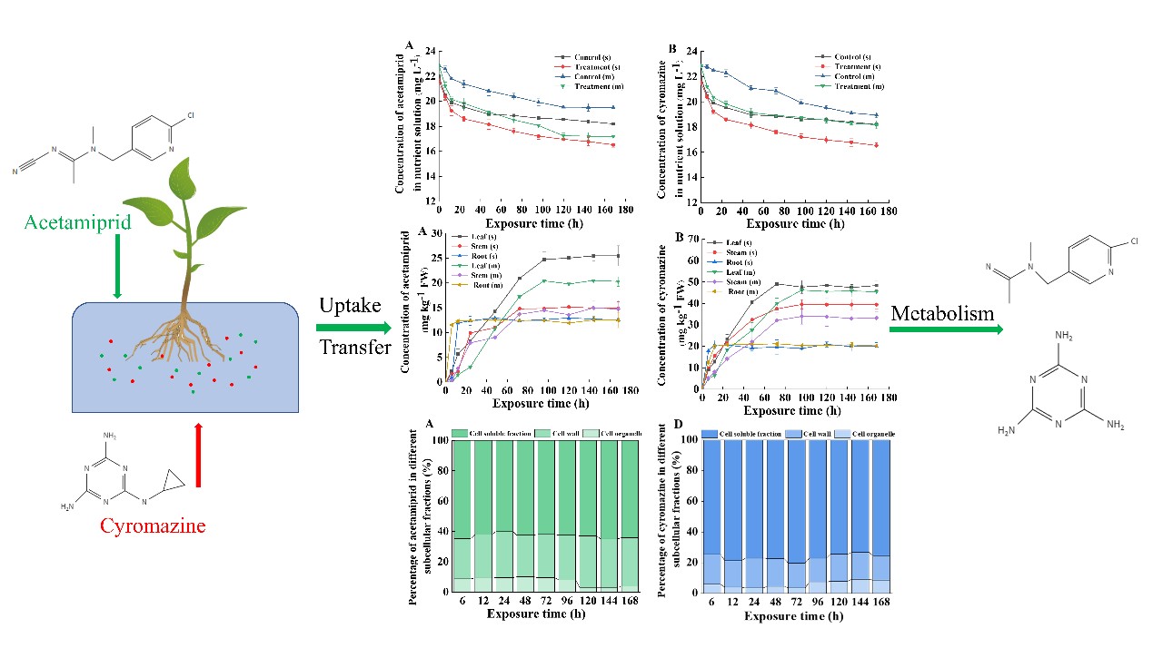 图3. 植物对啶虫脒和灭蝇胺的吸收、传导和代谢规律与机制