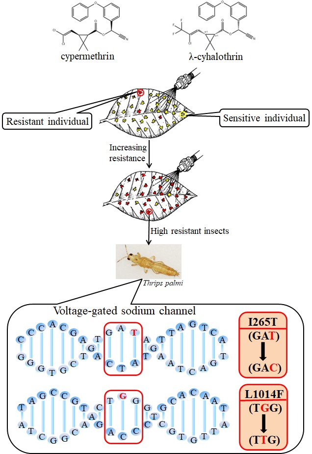昆虫对拟除虫菊酯抗性与钠离子通道突变位点高度相关、紧密连锁,鉴定突变位点和监测昆虫突变基因的频率,可以了解田间害虫抗性水平,从分子水平阐明拟除虫菊酯和钠离子通道相互作用机理。