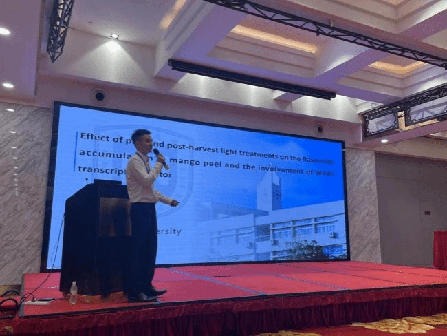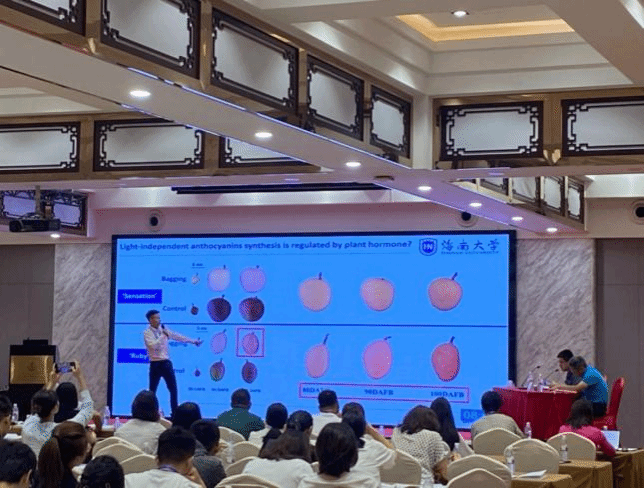 钱敏杰副教授介绍了团队在采前套袋处理和采后光照处理调控芒果类黄酮合成的研究进展,并介绍了WRKY转录因子调控芒果果皮花青苷合成的分子机制。