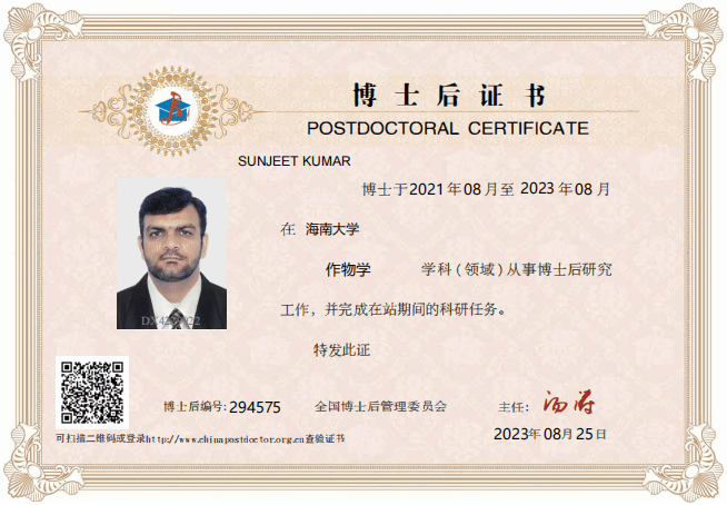 图35. Sunjeet Kumar博士后证书