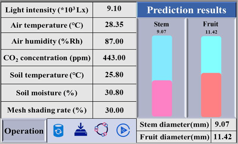 成果可用于农业场景下实时采集环境因子监测数据,提供数据可视化,基于混合神经网络模型和边缘计算技术,在农业现场实现植物生长状态预测(预测结果可视化),进而指导设施植物环境调控。