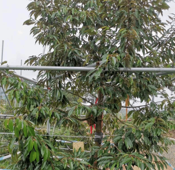 团队曾在4月榴莲盛花期时提出保花保果的建议,并指导相关技术方法,现8月已喜获海南本土树熟榴莲一批。今后将继续指导利用适应海南地区种植、高产稳产的优株作为外植体母株,利用离体快繁生产良种壮苗,推行海南榴莲种植良种良法,促进海南榴莲产业可持续开发利用。