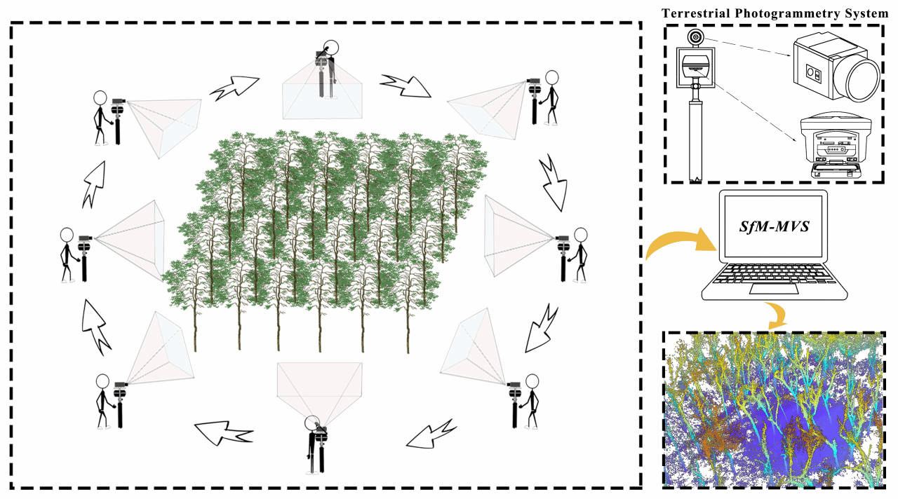 图4. 基于地面摄影测量系统的橡胶林三维可视化监测示意图