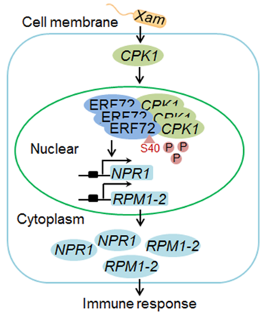 在Plant Biotechnology Journal上在线发表了题为“CPK1-mediated ERF72 protein phosphorylation confers improved disease resistance to cassava bacterial blight”的研究论文。该研究揭示了阐明蛋白互作磷酸化模块“(Calmodulin-domain protein kinase 1(CPK1)-MeERF72”和转录调控模块“MeERF72-下游基因”介导的木薯抗病分子机制和调控网络,为木薯抗病分子育种奠定了理论基础。