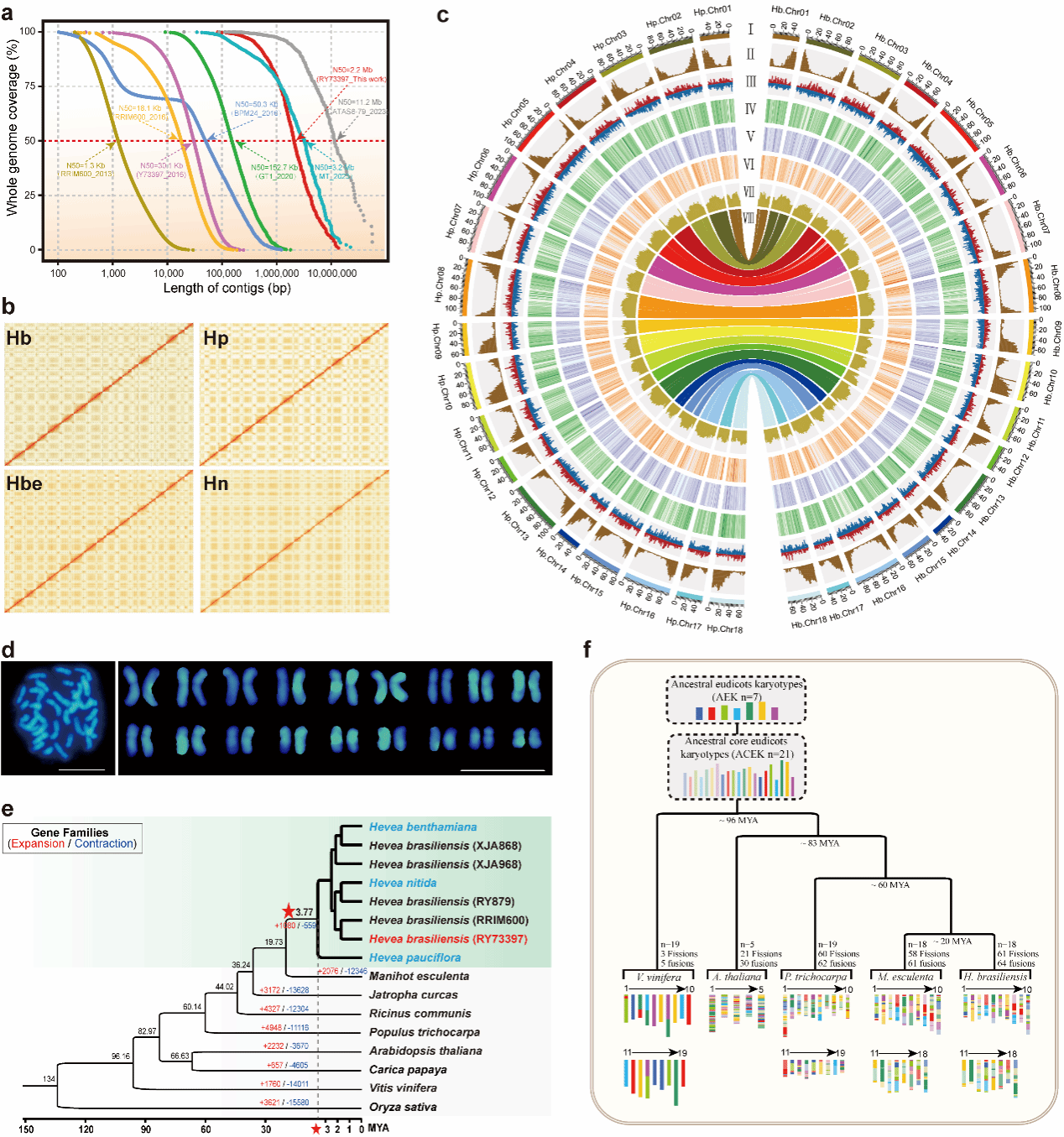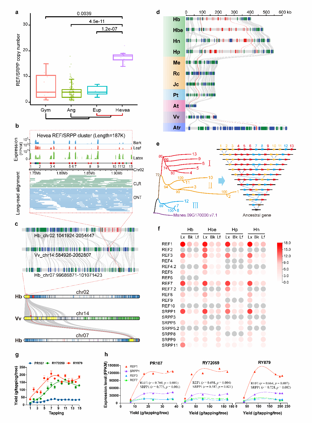 产胶生物学团队联合中国热科院橡胶所、兰州大学等团队在Nature Communications上在线发表了题为“Pan-genome and phylogenomic analyses highlight Hevea species delineation and rubber trait evolution”的研究论文。研究阐释了目前世界主要产胶国保存的三类橡胶树种质资源的遗传结构和亲缘关系,并发现橡胶延伸因子/小橡胶粒子蛋白(REF/SRPP)大基因簇的产生,及其在产胶细胞乳管中的特异性功能分化是植物形成产胶这种抗虫性状的一个关键性进化事件。研究结果为进一步探究产胶性状的进化机制,加快橡胶树资源的高效利用和品种遗传改良提供了重要理论依据和资源支撑。