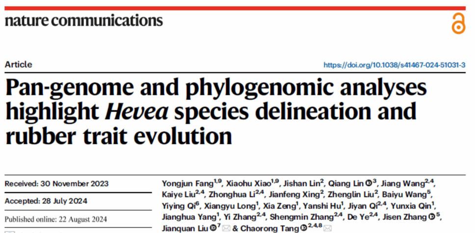 的唐朝荣研究员、兰州大学生态学院的刘建全教授为该论文的共同通讯作者,中国热科院橡胶所的方永军和肖小虎副研究员为该论文的共同第一作者。广西大学的张积森教授、中国农科院深圳农业基因组研究所的林强副研究员等参与了该项研究。研究得到了国家自然科学基金、海南省科技人才创新项目等项目资助。