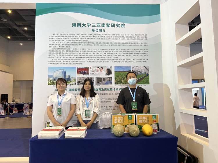 选育的海南设施甜瓜新品种、南豇一号、香灿大米等产品,展台上的甜瓜吸引了众多采购商和市民前来品尝,并与采购商洽谈合作,市民纷纷点赞甜瓜口感非常好。本次活动展示效果良好,接待市民咨询50多人次。