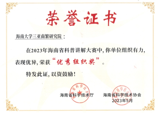 荣获2023海南省科普讲解大赛“优秀组织奖”。