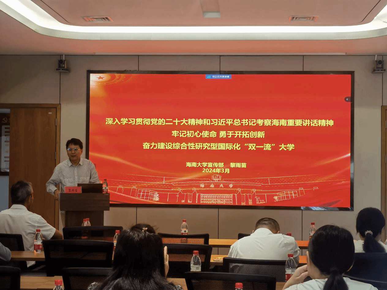 宣传部副部长黎雨苗进行“牢记初心使命 勇于开拓创新 奋力建设综合性研究型国际化“双一流”大学”为主题的“知校、爱校、荣校”讲座。讲座由欧乐影院