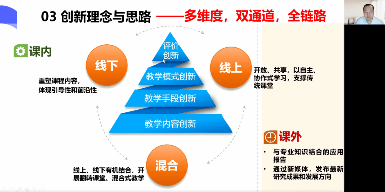 会上,赵鲁涛教授从课程简介、学情与效果分析、创新理念与思路、创新举措、成效辐射五个方面对教学创新报告的撰写方法和思路进行了全面指导,结合教学大赛主题和目标,解读了贯彻“四新”理念和深入推进教学创新改革的思路。通过分享多个课程实录的案例讲解了教学设计、课堂实录的注意事项,突出引导学生参与式学习。此外,赵教授结合个人的参赛经历,对每位参赛老师的申报材料提供了针对性的修改建议。