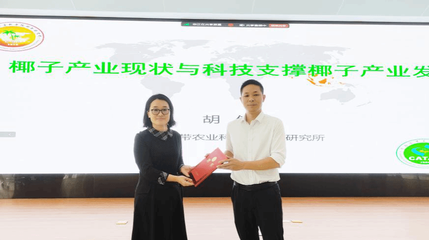 种子科学与工程专业本科生冬季小学期授课,胡伟研究员授课的课程章节为《作物栽培学-椰子》,授课题目为《椰子产业现状与科技支撑椰子产业发展》。授课仪式由朱国鹏教授主持,陈艳丽副院长对胡伟研究员的到来表示热烈欢迎,并为其颁发聘书。