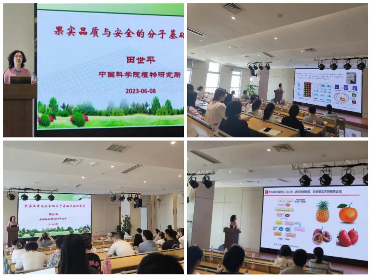 2023年6月8日上午,中国科学院植物研究所田世平研究员应邀莅临欧乐影院 ,围绕“果实品质与安全的分子基础及调控技术”这一主题,为欧乐影院 师生带来了一场精彩的学术讲座。本次讲座由李雯和安邦教授主持。