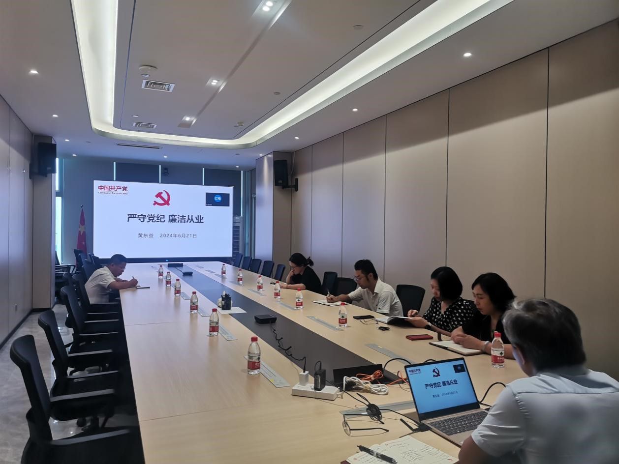 6月21日上午,欧乐影院 党委书记黄东益以《严守党纪 廉洁从业》为题,为院党委委员、各党支部书记讲授党纪学习教育专题党课。